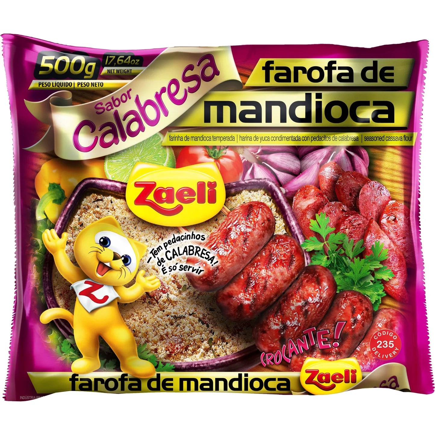 • 1. O que é a Farofa Mandioca de Calabresa Zaeli 500g?