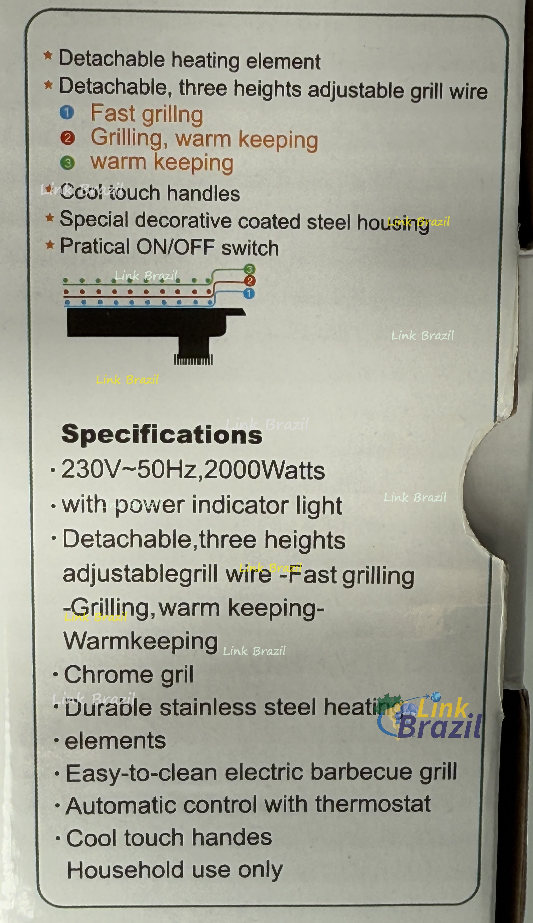 Churrasqueira Elétrica 2000W 230v Link Brasil
