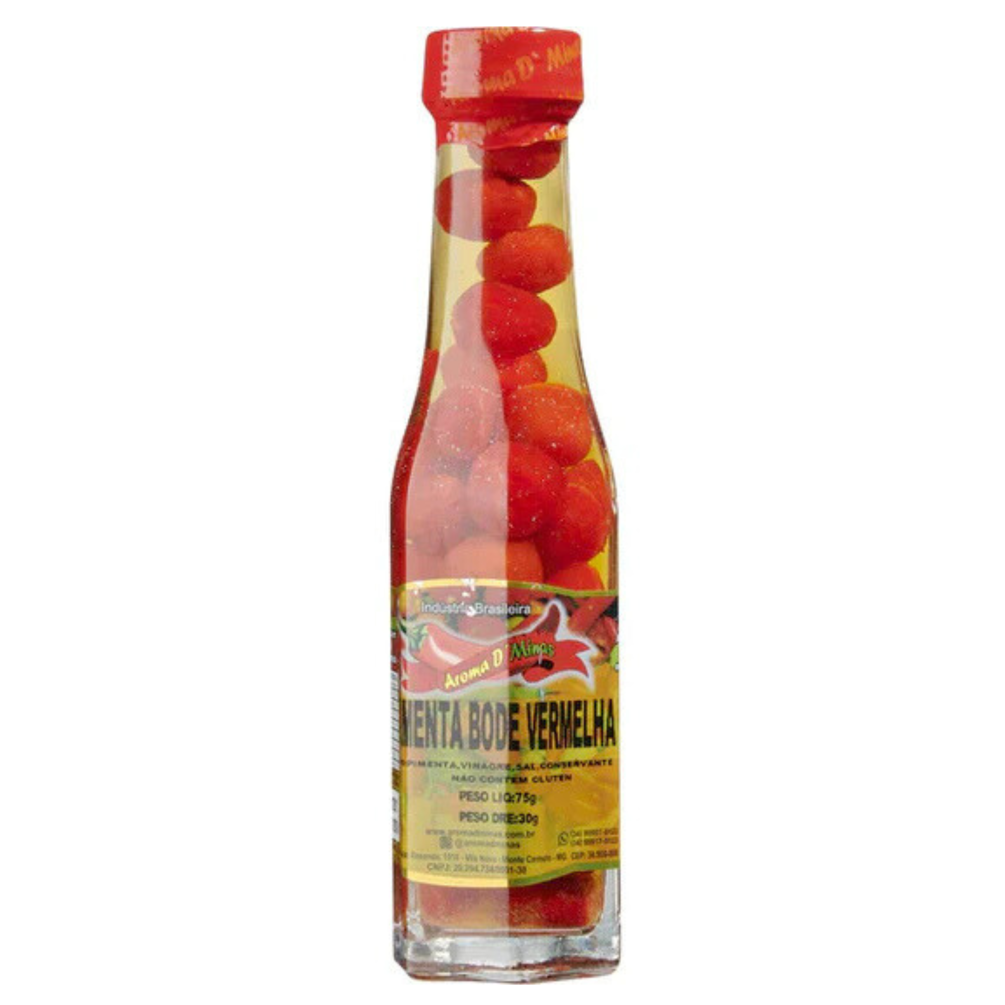 A Pimenta de Bode Vermelha Aroma D'Minas 75 g traz todo o sabor típico mineiro: pimenta bode vermelha em conserva, temperada com vinagre e sal, pronta para uso. Oferece aroma marcante, picância moderada e sabor levemente ácido — ideal para acompanhar feijoadas, grelhados, vinagretes ou pimentas de cheiro. Embalagem em pote ou vidro que conserva fresco.